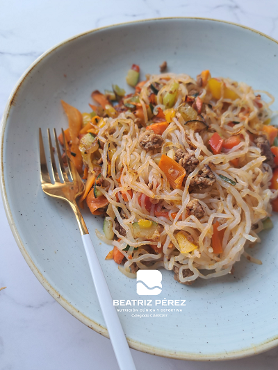 Pasta de konjac con carne picada Escrito por Beatriz Pérez 20 de junio de 2025 1 persona Dificultad: baja 15 min ¿Buscas una comida baja en calorías, rica en proteínas y súper saciante? Esta receta de pasta konjac con verduras y carne picada es perfecta para ti, sin renunciar a la pasta. Gracias al konjac, […]
