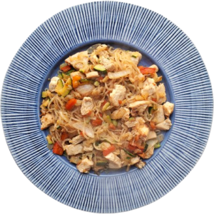 Receta de pasta konjac de verduras y pollo