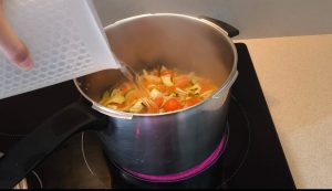 Incorporamos la calabaza en dados y la leche de coco y dejamos cocer unos 40mint a fuego bajo o hasta que estén bien tiernas
