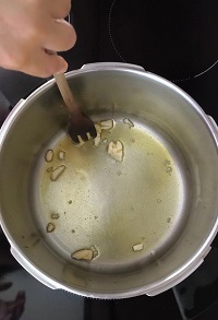 En una olla alta, añade la cebolla con la sal y dejamos pochar. A continuación,  agregamos los pimientos, zanahoria y tomate y ajo rallado, las especias y curry y mezclamos bien y dejamos cocer unos 5 mint