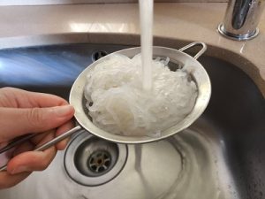 Lava muy bien y escurre la pasta konjac.